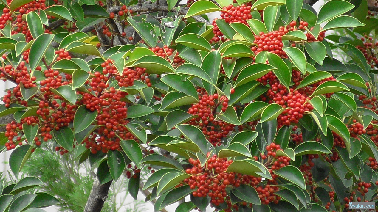 赤くて丸い小さな実を付けます。